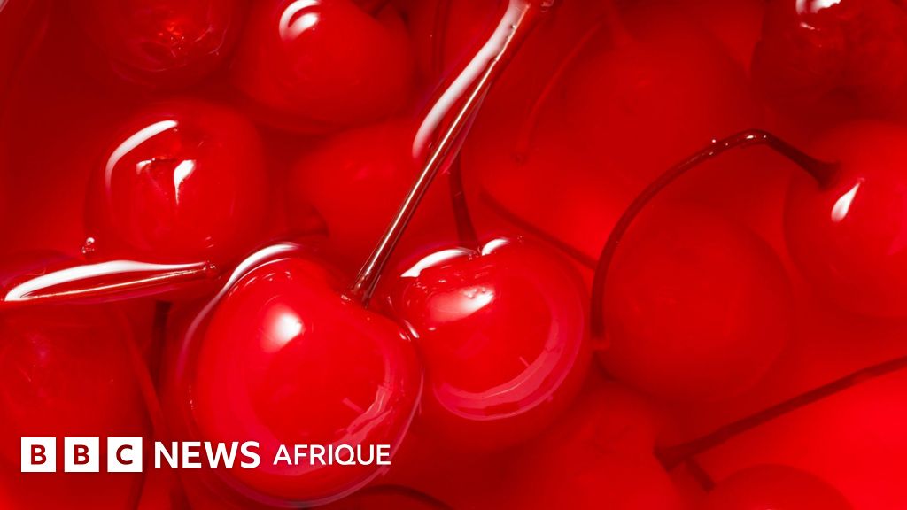 Légende image, Les cerises au marasquin sont des cerises sucrées qui ont souvent été colorées artificiellement pour être d'un rouge très vif