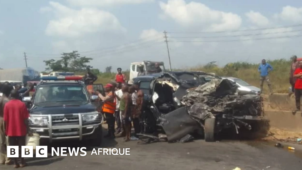 Cinq hommes se trouvaient à bord du véhicule lorsque celui-ci est entré en collision avec un camion stationné sur le bas-côté de la route, selon les autorités. Le Corps fédéral de la sécurité routière du Nigeria (FRSC) précise que la voiture, un Lexus Jeep, est soupçonnée d'avoir roulé au-dessus de la limite de vitesse et de s'être écrasée lors d'un dépassement.