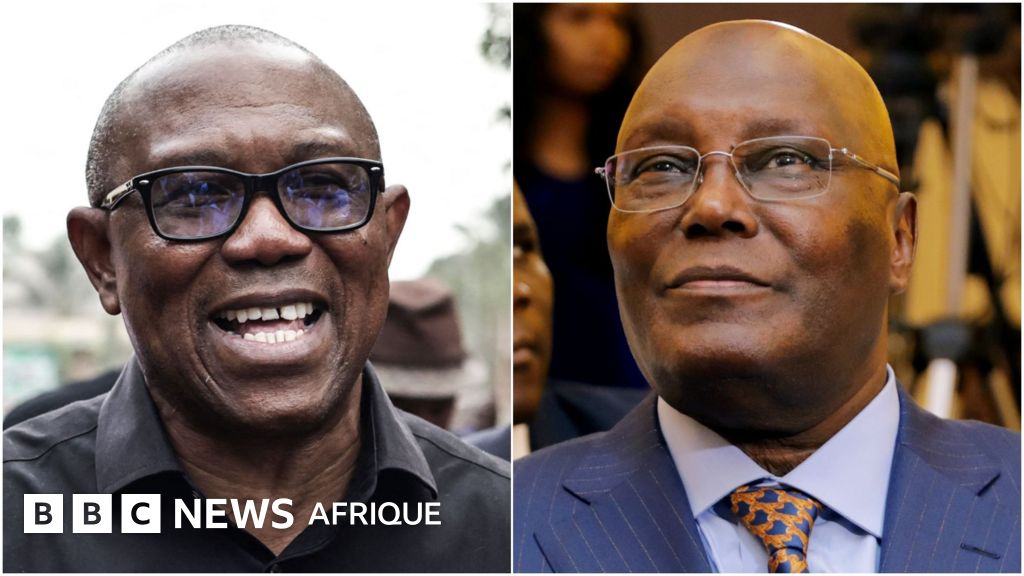 Légende image, Peter Obi (à gauche) et Atiku Abubakar (à droite) peuvent-ils désormais travailler ensemble ?