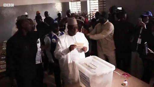 Légende vidéo, Cliquez sur l'image pour faire défiler la vidéo « Il n’appartient ni à un candidat ni à un camp de proclamer une victoire ou des résultats. Ce soir les bureaux de vote vont parler, cela reflétera le choix des Sénégalais. Nous espérons que ce choix sera le meilleur pour le Sénégal », a conclu le président Macky Sall qui n’est pas candidat à sa propre succession.