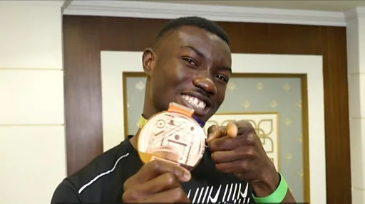 Hugues Fabrice Zongo, doctorant en Ingénierie et champion d'athlétisme, médaillé de Bronze au triple saut - Mondiaux de Doha 2019.