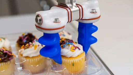 Sa main robotisée est dotée de doigts caoutchouteux qui se remplissent l'air autour des objets, ce qui lui permet de manipuler des produits alimentaires délicats comme des biscuits et des pâtisseries.
