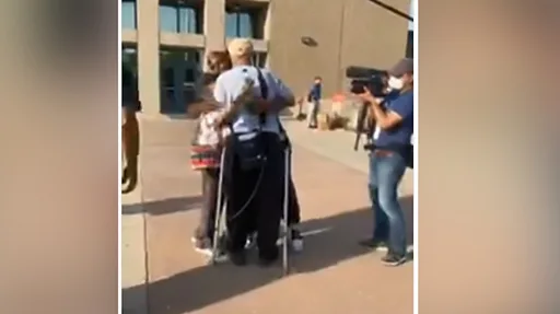 Moore s'est mise à genoux pour célébrer la libération d'Irons, 40 ans, alors qu'il sortait du centre correctionnel de la ville de Jefferson, une prison de sécurité maximale dans le Missouri.