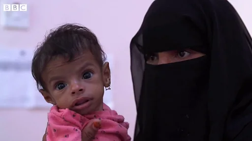 Selon l'ONU, 5 millions de Yéménites sont au bord de la famine et près de 50 000 connaissent déjà des conditions proches de la famine. On estime que 2,3 millions d'enfants de moins de cinq ans souffrent de malnutrition aiguë, dont 400 000 risquent de mourir sans traitement, selon l'ONU.