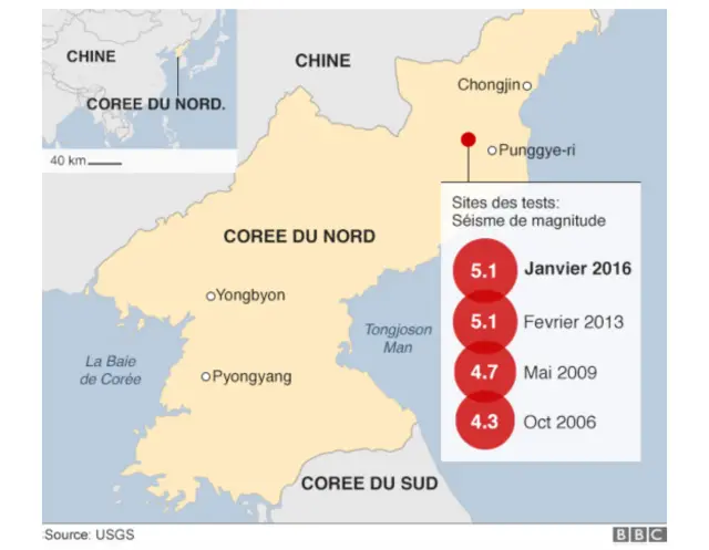 Pyongyang a testé trois fois la bombe atomique A, utilisant la seule fission, en 2006, 2009 et 2013, ce qui lui a valu plusieurs volées de sanctions internationales. Le mois dernier, Kim Jong-Un avait laissé entendre que son pays avait mis au point une bombe H, une déclaration largement mise en doute par les spécialistes internationaux.