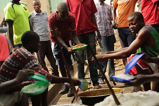 Emery Manirakiza, un étudiant en première année de droit, prépare le déjeuner pour ses sept colocataires à Mugoboka, une banlieue à quelques centaines de mètres à l'est du campus principal de l'Université du Burundi. Il a dû sécher les cours du matin, car c'est son tour de préparer le déjeuner, une pâte de manioc qu'ils vont manger avec des haricots.