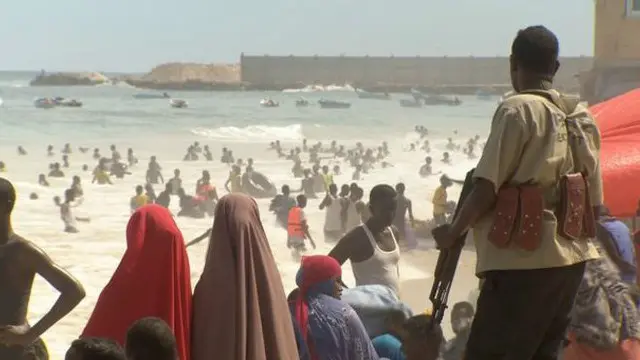 De nombreux restaurants, dont certains hauts de gamme fréquentés par les hommes d'affaires et la diaspora somalienne revenue au pays, bordent cette plage du Lido.