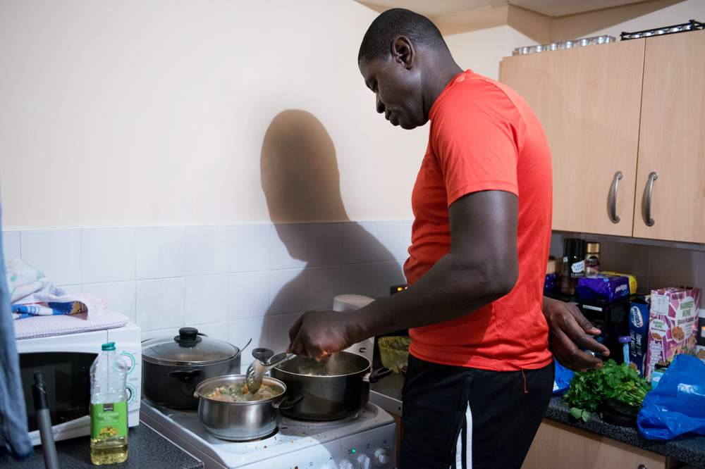 Son réconfort vient des plats traditionnels qu’il cuisine, des chants des membres d’une petite communauté sénégalaise qu’il a rencontrée à Bristol et de sa routine quotidienne : s’occuper de ses filles et passer du temps avec elles.