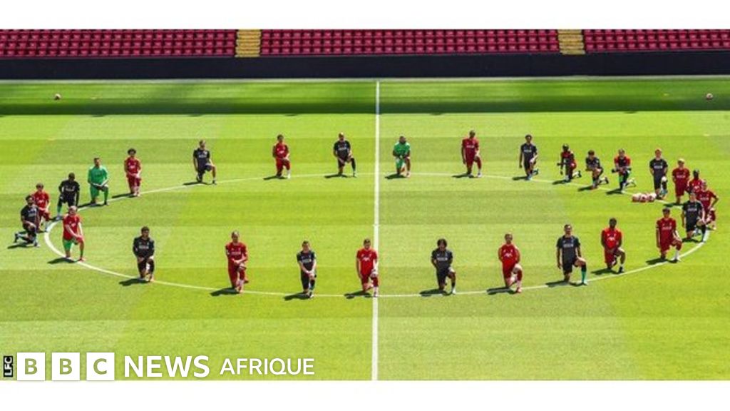 Les joueurs de Liverpool se sont agenouillés autour du cercle central à Anfield dans un message de soutien après le décès en garde à vue de l'Afro-Américain George Floyd à Minneapolis.