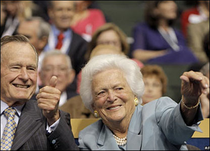 Ish Presidenti George Bush dhe babai i presidentit aktual bashkë me gruan e tij, Barbara, ishin të pranishëm në atmosferën festive në qendrën "Xcel Energy".