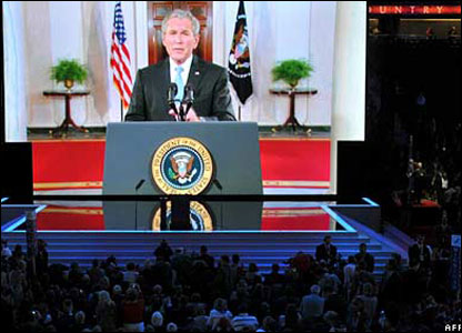 Duke folur nëpërmjet një video lidhje nga Uashingtoni, Presidenti George W Bush tha se Zoti McCain "ishte gati ta udhëhiqte' dhe mbronte Amerikën.