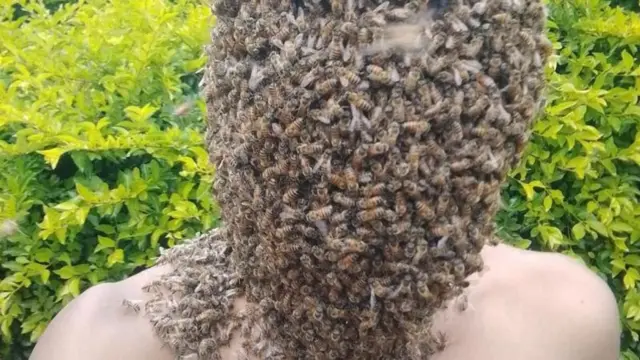 ገና አፍላ ወጣት ነው፤ ከወገቡ በላይ ራቁቱን ሆኖ ንቦችን እንደ ሸማ ለብሷቸው ይታያል።