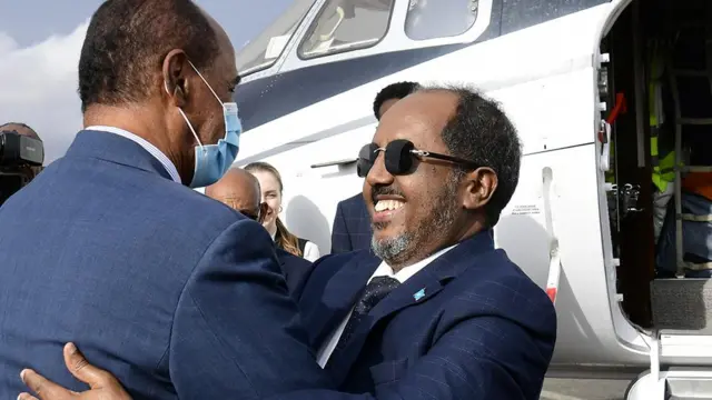 ለአራት ቀናት ጉብኝት ወደ ኤርትራ የተጓዙትን ሐሰን ሼክ ሞሐመድን በአሥመራ አውሮፕላን ማረፊያ የተቀበሏቸው ፕሬዝዳንት ኢሳያስ አፈወርቂ ናቸው።