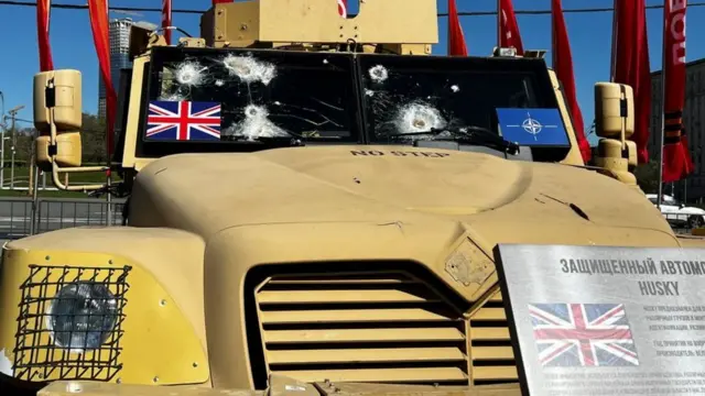 ከተማረኩት መካከል ለዩክሬን የተበረከተው የብሪታንያው ሃስኪ የተባለ ታክቲካል ድጋፍ ሰጪ መኪና ይገኝበታል። የፊት መስታወቱ በጥይት ተበሳስቶ ቀርቧል።