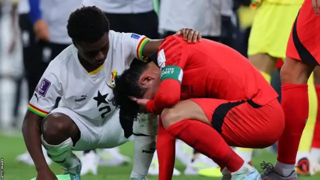 ጋናዎች ሲጨፍሩ የደቡብ ኮሪያው አምበል ሰን ሁንግ-ሚን ሲያለቅስ ታይቷል።