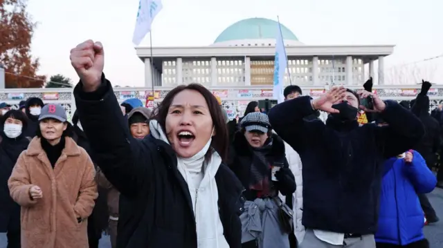 በሺዎች የሚቆጠሩ ደቡብ ኮሪያውያን ውሳኔውን በጽኑ ተቃውመው ወደ ፓርላማ አምርተው ነበር። አንዳንዶች የሕንጻውን አጥር ጥሰው በመግባት እንዲሁም በአጥሮች ላይ ተንጠላጥለው ወደ ፓርላማው ለመግባት ሲሞክሩ ታይተዋል። በተቃዋሚዎች እና በፖሊሶች መካከል ግጭት መፈጠሩ ተዘግቧል።