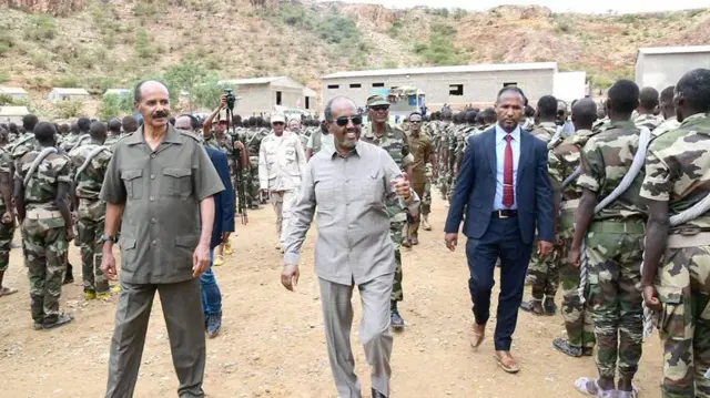 አሁን አዲሱ ፕሬዝዳንት ሐሰን ሼክ ሞሐመድ ወደ ኤርትራ በማምራት በሺዎች የሚቆጠሩ ወታደሮቻቸውን ሁኔታ ተመልክተው በምረቃቸው ላይ መሳተፋቸው ተዘግቧል።
