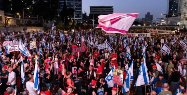 አንዳንድ ተቃዋሚዎች ቴል አቪቭ በሚገኘው ወታደራዊ መቀመጫ ኪርያ አካባቢ ነው የተሰባሰቡት።