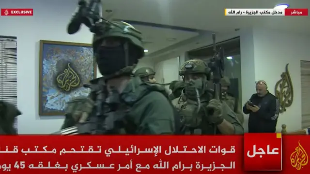 የታጠቁ እና ፊታቸውን በጭምብል የሸፈኑ የእስራኤል ወታደሮች በቀጥታ ሥርጭት ላይ የነበረውን የአል ጀዚራ የራማላ ቢሮን የወረሩት እሁድ ማለዳ ላይ ነው።