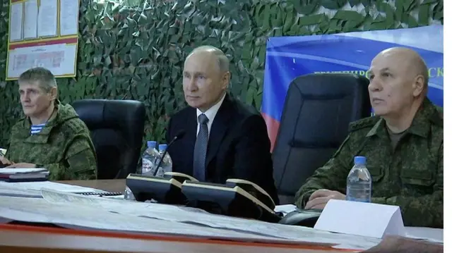 ቀጥሎ ፑቲን የተለየ ልብስ ለብሰው ወደ ምሽግ በጦር መኮንኖች ታጅበው ሲገቡ አሳይቷል። ቢቢሲ ፑቲን የሚታዩበት ምስል የት እና መቼ እንደተቀረጸ አላረጋገጠም።