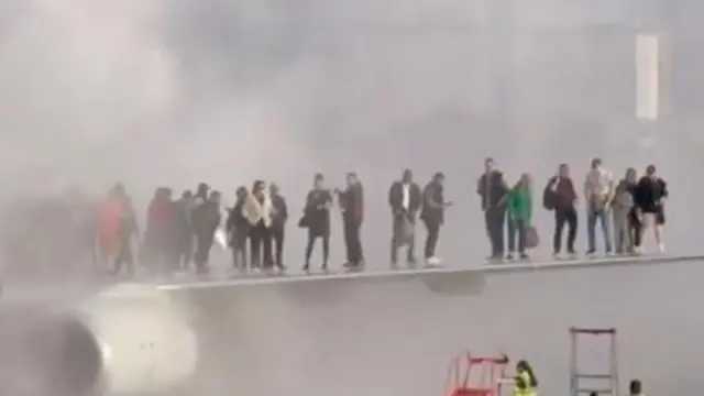 አየር ማረፊያው ውስጥ ከነበሩት መካከል አንዳንዶች ጥቁር ጭስ አየሩን በሞላበት ወቅት የአውሮፕላኑ ተሳፋሪዎች ክንፉ ላይ በመውጣት ከእሳቱ ሲሸሹ የሚያሳይ ቪዲዮ በማህበራዊ ሚዲያ ለቀዋል።