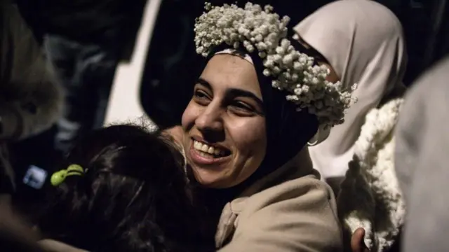 ቅዳሜ ከሌሊቱ ስምንት ሰዓት ጀምሮ በርካቶች እስረኞቹን ለመቀበል በጉጉት ሲጠባበቁ ነበር። እስረኞችን የያዙት አውቶብሶች ቤይቱኒያ በተሰኘችው ከተማ ሲያልፍ ህዝቡ በደስታ፣ በጩኸት፣ በመፈክር እና እልልታቸውን አሰምተዋል።