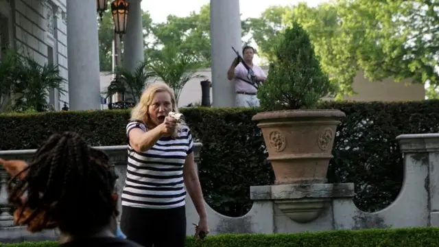 የሕግ ባለሙያ የሆኑት ማርክና ፓትሪሺያ ማክሎስኪ የዘር መድልዎን በመቃወም ድምፅ እያሰሙ በበራቸው በኩል ባለፉ ሰዎች ላይ የጦር መሣሪያዎቻቸውን የመዘዙት።
