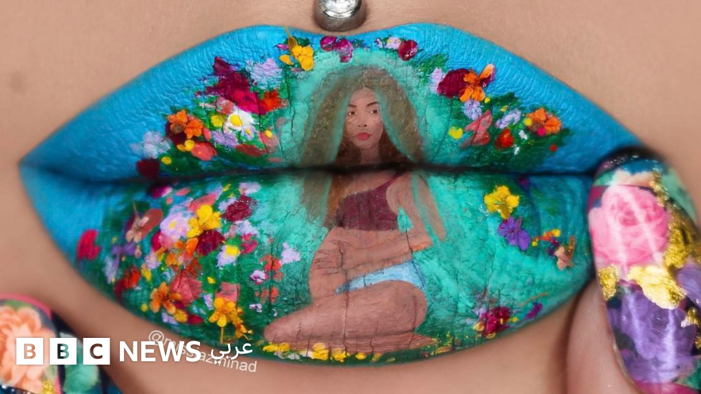 خبيرة تجميل أمريكية ترسم صورة حمل بيونسيه على شفتيها