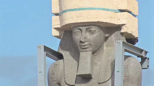 نقلت وزارة الآثار المصرية تمثال الملك الفرعوني رمسيس الثاني ليستقر في موقعه النهائي الجديد في بهو المتحف المصري الكبير خلال مراسم احتفالية شهدت عزفا للموسيقى العسكرية.