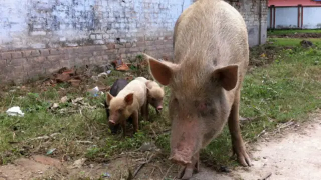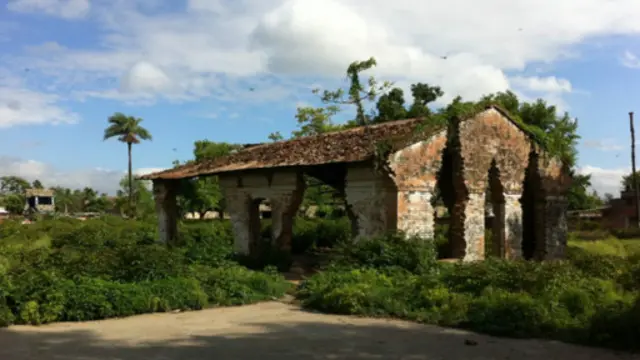 في هذا المكان توجد حيوانات في إحدى المزارع، كما أن الباب الحديدي لتلك المزرعة مفتوح على مصراعيه كأن الحيوانات المتمردة نسيت غلقه بعد أن خرجت تلاحق أصحابها بعيدا. يكثر وجود الخنازير في المكان، ويقف اثنان من الخيول، هرم جسدهما مع مرور الزمن، في أحد أركان المزرعة وهي تهش بأذيالها الذباب، فضلا عن وجود حيوانات أخرى أمثال البقر والماعز والأغنام والدجاج. في هذا المكان قضى أورويل عامه الأول قبل أن ينتقل مع أمه إلى بلدة هينلي على نهر التيمز في بريطانيا. وعلى مقربة من المنزل الذي عاشت فيه الأسرة مازالت توجد بقايا مخزن كان يستخدم في تخزين الأفيون. كانت البلاد في ذلك الوقت تهتم بزراعة نبات الخشخاش، وكان والد أورويل يعمل في إدارة الأفيون التابعة للحكومة البريطانية، إذ كانت مهمته مراقبة إنتاج العقّار وتخزينه قبل تصديره إلى الصين.
