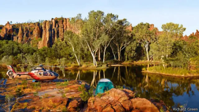 ويعتبر غرين أن "المناطق الوسطى من استراليا تتسم بطابع بري للغاية". كلمات قالها رفيقي في الرحلة بينما كان يناور بمروحيته في الجو، على نحو لا مبالٍ، عبر خيوط أشعة الشمس الذهبية، وذلك في ملمح آخر من ملامح استهانته بالمخاطر.
