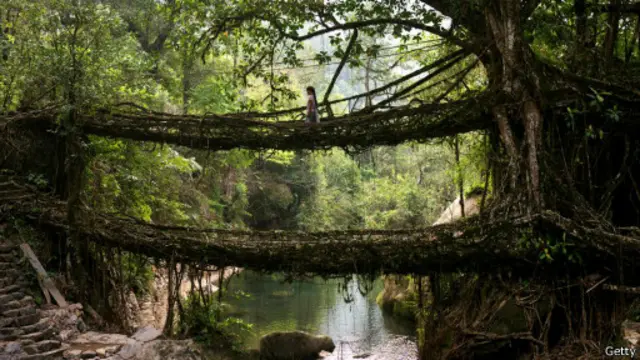 تستخدم قرية تشيرابونجي الواقعة في ولاية ميغالايا، المعروفة بأنها واحدة من أكثر الأماكن رطوبة في العالم، جذور الشجر في بناء الجسور بدلًا من استخدام الطوب، أو الطين، أو حتى الألواح الخشبية العادية.