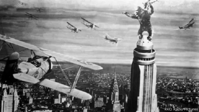 لكن في عشرينيات وثلاثينيات القرن الماضي، كانت أفلام السينما وناطحات السحاب في قمة انسجامهما، سواء كان فيلم "كينغ كونغ" (1933) الذي تدور أحداثه ما بين مبنى "ستيت إمباير"، أو الممثل فريد استير وهو يؤدي رقصة النقر على الأرض بأحذية خاصة في نادٍ ليلي بالطابق الخمسين في فيلمه "سوينغ تايم" (1936).