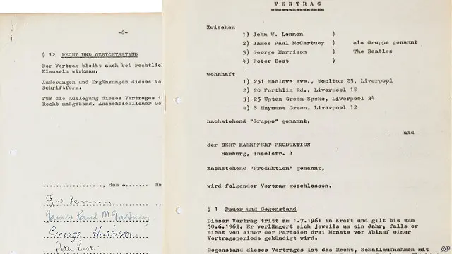 ووُقّع العقد، الذي يتكون من 6 صفحات، في عام 1961 في هامبورغ، حيث بدأ الفريق مسيرته بالعزف في الملاهي الليلية.