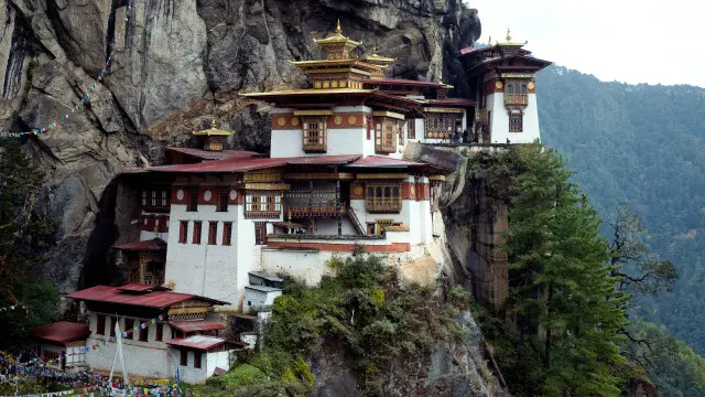 ولكن يُعتقد أن هذا الرجل مكث في ذلك المكان أكثر من ثلاث سنوات للتأمل فحسب، ويُنسب إليه الفضل في دخول البوذية إلى بوتان. وتحمل المعابد الأربعة الرئيسية الموجودة في هذا الموقع، وكذلك الساحة المربعة الواقعة هناك، رسوما معقدة تُصوِّر أنصاف آلهة، وكذلك بوذا وهو يحارب الشياطين، وهي رسوم تعطي انطباعا بالعظمة الإلهية.