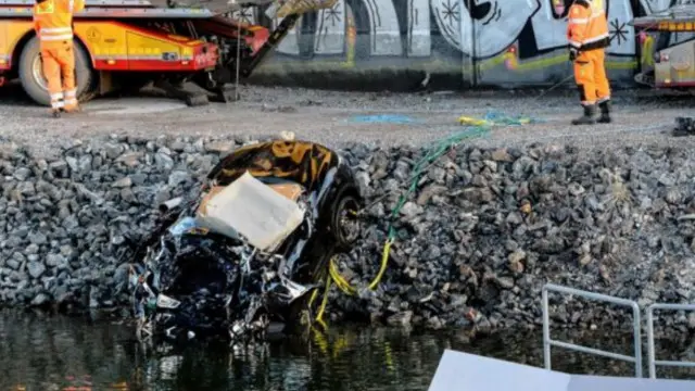 وكانت السيارة قد سقطت من فوق جسر بارتفاع يزيد على 25 مترا في قناة مائية، انفتح ليسمح بعبور سفينة بالقرب من استكهولم صباح يوم السبت.