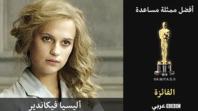 وفازت الممثلة السويدية اليسيا فيكاندر (27 عاما) بجائزة افضل ممثلة مساعدة عن دورها في فيلم "الفتاة الدنماركية". وتقوم فيكاندر بدور غيردا فيغنير الرسامة الدنمركية التي يدرك زوجها أنه يود التحول جنسيا إلى امرأة.