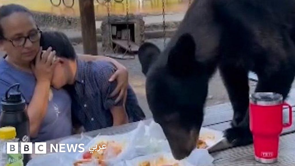 قطع دب أسود جائع نزهة أم وطفلها كانا يتناولان الطعام في حديقة تشيبينك في المكسيك في ولاية نويفو ليون وصعد إلى طاولتهما والتهم طعامهما لكنهما ظلا بلا حراك.
