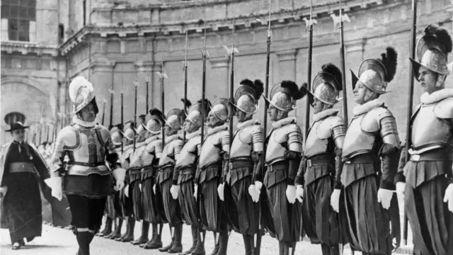 وعوضاً عن ذلك، تعتمد دولة الفاتيكان على الحرس السويسري البابوي، وهو قوة صغيرة ذات طابع رمزي وتاريخي لحماية البابا. ومن الناحية الأمنية والسياسية، تتولى إيطاليا مسؤولية حماية الفاتيكان بموجب اتفاقية لاتران الموقّعة عام 1929.