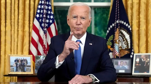 وشرح بايدن للأمريكيين أسباب قراره التاريخي بالتنحي عن منصب المرشح الديمقراطي في انتخابات نوفمبر/تشرين الثاني المقبل، في أول ظهور علني له منذ إعلانه عن القرار في 21 يوليو/تموز، حين مهّد الطريق أمام نائبته كامالا هاريس للترشح.