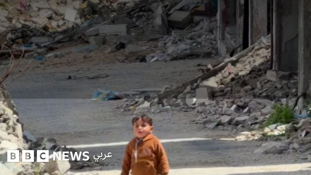 طفل حاف يمشي في شوارع غزة وسط الأنقاض