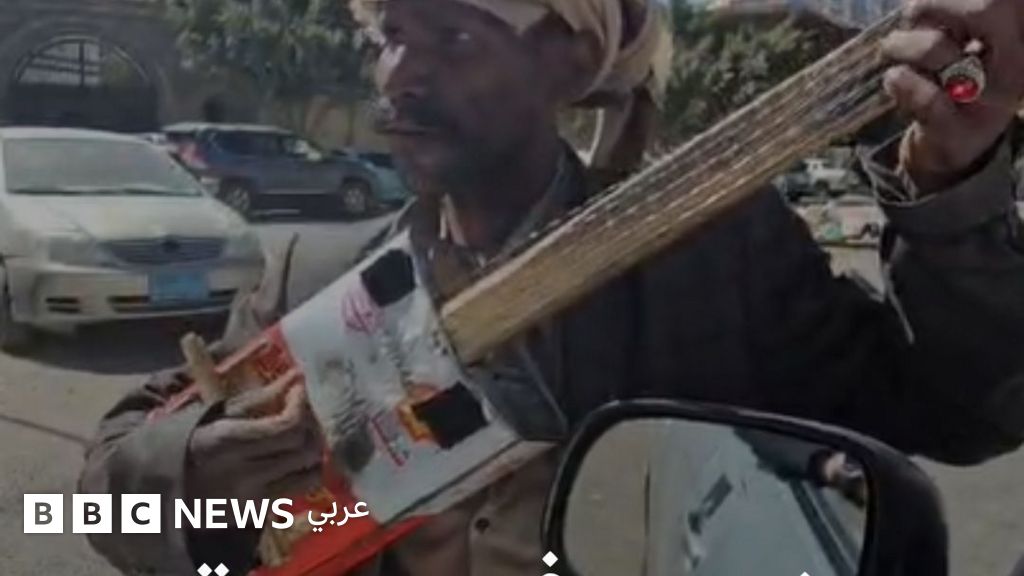 يمني يعزف موسيقى بعود من الخردة
