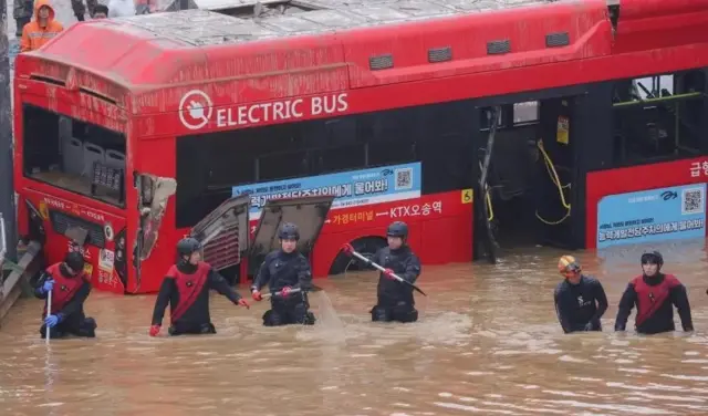 تعمل فرق الإنقاذ على الوصول إلى المركبات المحاصرة في نفق مغمور بالمياه بالقرب من مدينة تشونغ يو في كوريا الجنوبية، وقد تم انتشال تسع جثث.