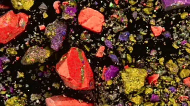 وعند تحليل الفريق للمسحوق الجاف، وجدوا أنه يحتوي على الهيماتيت، "ما يعطي المعجون لوناً أحمر داكناً"، كما يقول.