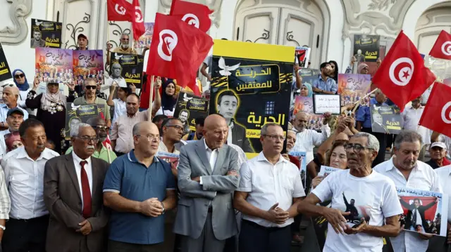 وانضمّ القادة السياسيون عصام الشابي وعبد الحميد الجلاصي وغازي الشواشي وخيام التركي إلى الناشط السياسي، جوهر بن مبارك، الذي بدأ، الأسبوع الماضي، إضرابا عن الطعام، احتجاجا على استمرار حبسه دون محاكمة في قضية "التآمر على أمن الدولة." وكان زعيم حركة النهضة، راشد الغنوشي، قد أضرب عن الطعام ثلاثة أيام، تضامنا مع بن مبارك. وذكرت هيئة الدفاع عن السياسيين الموقوفين أنها "تتفهم الظروف التي دفعتهم لهذا القرار الخطير رفضا للـظلم واحتجاجا على توظيف القضاء في خصومة سياسية."
