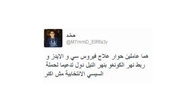 وعلى هاشتاغ #معجزة_فيرس_سي_سي، قال محمد حجاب إن كتب الطب ستذكر أن علاج فيروس الكبد الوبائي قد خرج من البلد الذي ما زال سكانه يشربون من مياه المجاري.