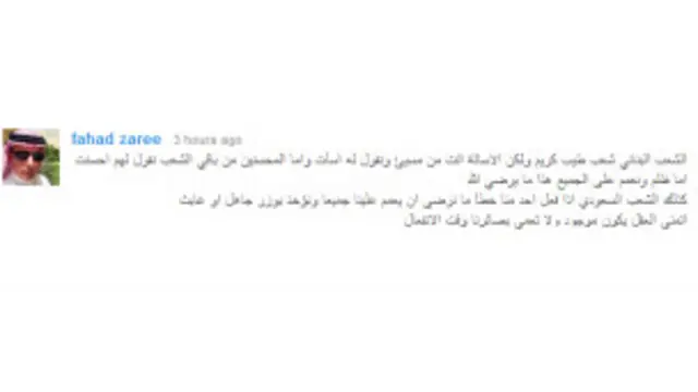 وقال fahad zaree من السعودية معلقا على الفيديو "الشعب اللبناني شعب طيب كريم ولكن الاساءة اتت من مسيئ ونقول له أسأت وأما المحسنين من باقي الشعب نقول لهم أحسنت اما أن نعمم على الجميع فهذا ما يرضي الله."