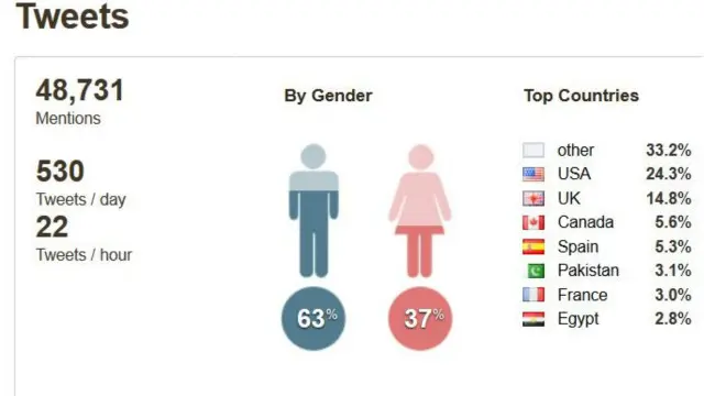 ربما يثير العجب عدد التغريدات التي ظهر فيها الهاشتاغ، والتي تعدت الـ48 ألف تغريدة، ما يوافق العدد في الهاشتاغ نفسه. إليكم قائمة بأكثر البلدان استخداما للهاشتاغ:
