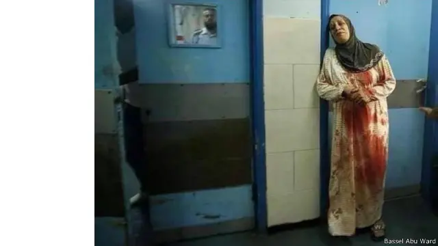 التقط الدكتور باسل ابو وردة هذه الصورة المؤثرة خلال عمله في مستشفى الشفاء بغزة في الـ25 من يوليو/تموز، قبل ان ينشرها على حسابه على تويتر ويتداولها المغردون اكثر من سبعة الاف مرة.