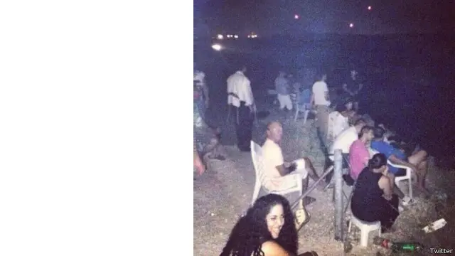 تظهر الصورة مجموعة من الاسرائيليين وهم يجلسون اعلى هضبة سيدروت في اسرائيل، يشاهدون القصف الاسرائيلي على غزة. وظهرت صور اخرى مماثلة من اسرائيل ليبدو الأمر وكأنه ظاهرة منتشرة، مما دفع بعض من الصحف إلى إطلاق اسم "سينما سيدروت على الهضبة.